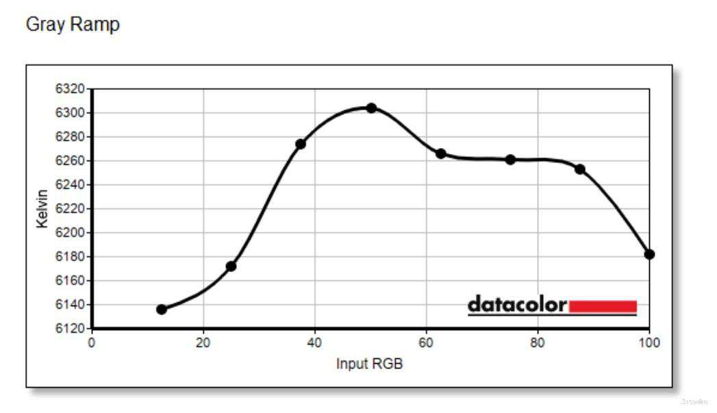 在伽马设定和色温方面,VG253KM的伽马曲线与标准的2.2伽马值非常吻合,这显示出其出厂校准的精准度。在实际使用中,用户可以欣赏到色彩逼真和明暗层次丰富的图像。至于色温,出厂预设的色温在6100至6300K之间,略低于东亚地区用户习惯的6500K标准色温,呈现出略偏暖的色调,这可能会使观看体验更加舒适,对眼睛也更为友好。