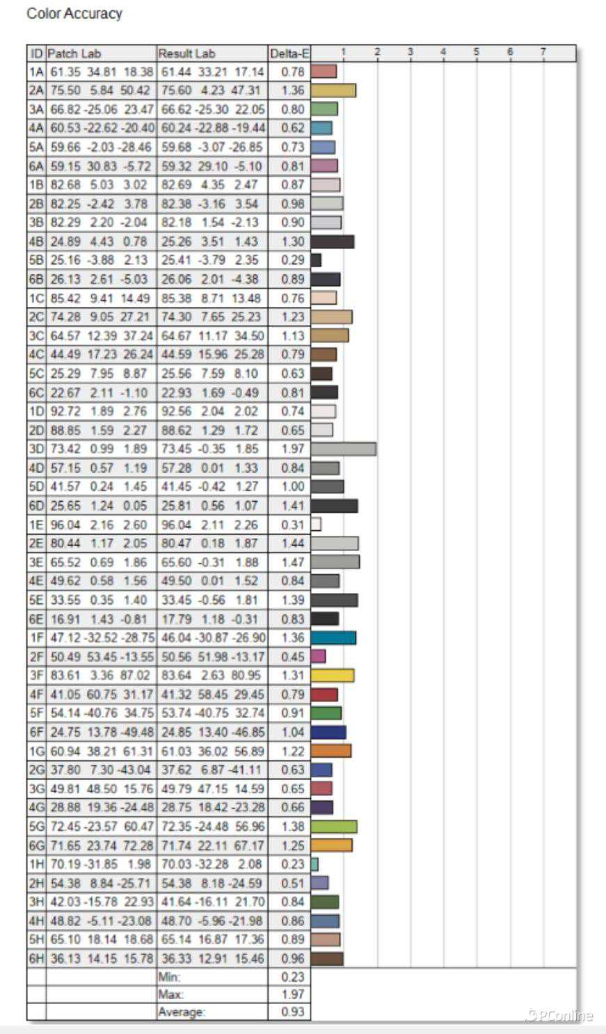 最后在色准上,传统VA面板我们都对其色彩不抱什么信心,VG253KM却令人意外地表现良好。色准度上,平均的DeltaE值为0.93,最大DeltaE值仅为1.97。这一数据意味着这款显示器在色彩还原上的表现十分优秀,完全能够满足专业工作对色彩精确度的高要求。
