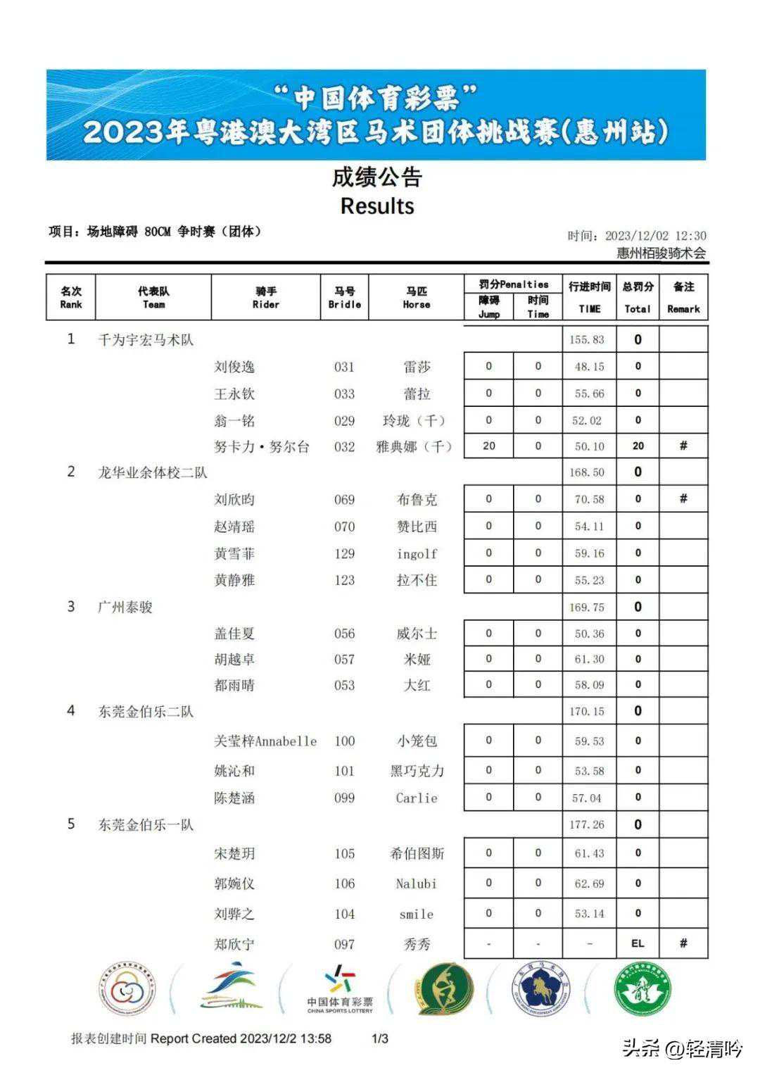 120CM级别的比赛广州泰骏派出了朱熙之Cola、李健聪小布和项钰晨DEJA(迪亚)3对人马组合。