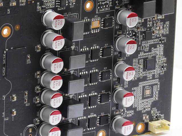 显卡PCB用料上,也丝毫不马虎,索泰GTX950-2GD5X-GAMINGOC显卡,采用了索泰与元件厂商联合定制的白金效能用料,一方面都可以大幅度提高电源转化效率,而且可以大大减少元件发热量,有效避免啸叫,另一方面,元件质量和寿命都非常高,延长显卡寿命。