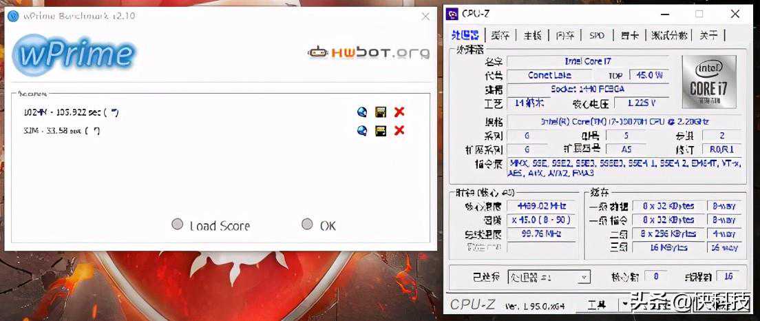 在wPrime中,单核心跑完32M数据需要时间33.56秒,全核跑完1024M则需求105.922秒。