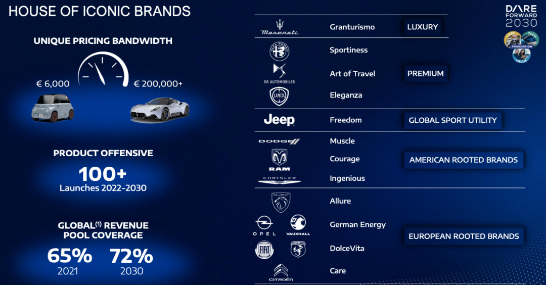STLA解决了PSA的市场结构问题,摊平了PSA后面的投资成本,规模化带来了新的成本空间,由此带来的杠杆效应自然是风险和机遇并存:光怪陆离的品牌定位,如此夸张的型谱规模,这些都是给Tavares的新挑战。