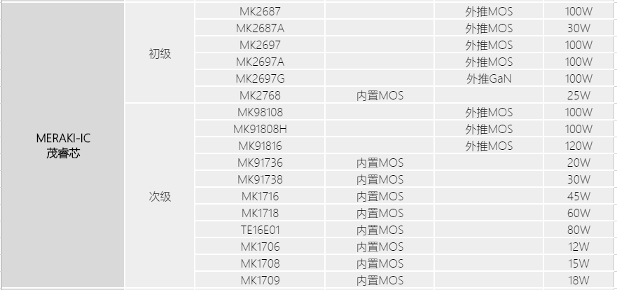 茂睿芯科技已经推出具有完全自主知识产权,业界型号目前最全面,技术最先进的副边同步整流控制芯片系列,全面助力USBPD、USBType-C等大功率快充充电器,多口排插,小体积适配器。截止目前茂睿芯科技产品已经在一线大客户里的高密度快充排插,魔方排插,小体积适配器设计中广泛采用。