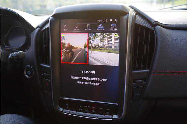 开门防后撞影像系统:在车辆熄火后,外后视镜两侧负责监控后方盲区的摄像头,还会单独在屏幕上显示30秒的后方影像,避免开门下车时,被后方突然介入的车辆或行人,而造成的安全隐患。