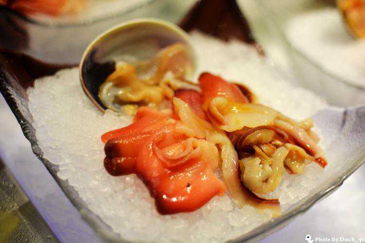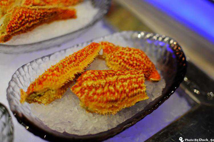 第三,海鲜种类。三者都差不多,都是来自世界各地的,让你大开眼界的各种各样的,高端大气上档次的海鲜。并且三家都是采用精美小盘子装,一下也拿不了多,一来美观,二来也避免浪费,吃完再拿。但值得一提的是,海鼎荟特别有鳄鱼和娃娃鱼。鳄鱼可是货真价实的大活物,当然了四脚和嘴巴都是固定住的,服务员说摸下它肚子就会动了。于是,我摸了下,真的是吓屎宝宝了,头一下就甩起来了,啊!宝宝胆子小呀,虽然这么看着鳄鱼很可怜,但人类这么辛苦爬到食物链顶端总不能吃素吧!除了鳄鱼外,海鼎荟的一大特色还有娃娃鱼,放心啦,现在娃娃鱼都是养殖的,比违法。娃娃鱼肉个人非常爱呢!至于其他石斑、龙胆、鱼生、虾蟹三家都差不多。