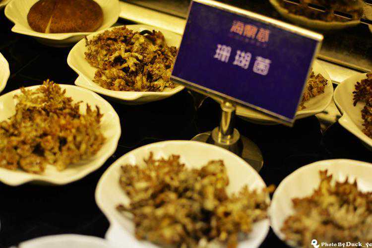第四,素菜方面,三家都有两个柜子放素菜,各种常见的火锅涮菜(当然档次都是比较高的),还有各种真贵菌类,鸡枞菌、金线莲等等,荤素总得结合的对吧。也有各色丸子。