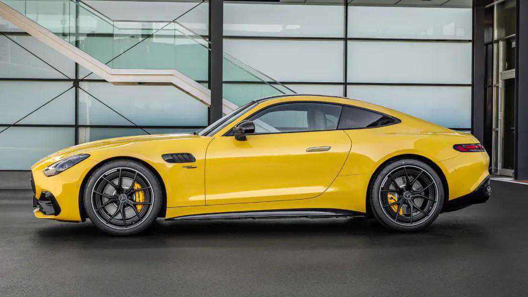 在侧面设计上,AMGGT43依旧是非常标准的前中置后驱跑车比例,车头和L113区域非常修长,座舱则相对圆润一体,整体呈现出向后“坐”的姿态。在车身尺寸上,AMGGT的车长超过了4.7米,宽度接近2米,高度则只有1.35米。也就是说,它并不是宝马Z4或保时捷718这种4.4米级别的小跑车,而是真正意义上的GT跑车。