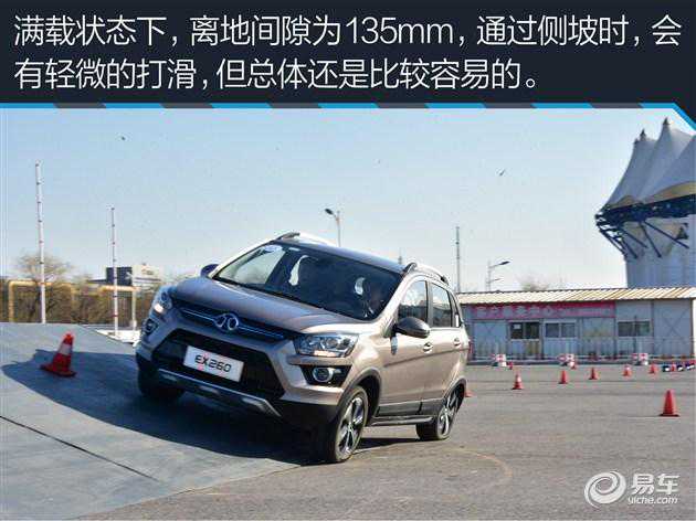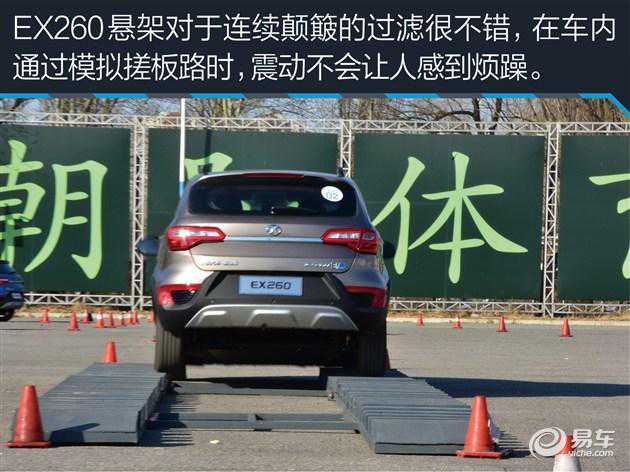 毕竟是SUV车型,所以除了日常通勤属性外,还是要兼顾一定的通过性的。在城里过个沟沟坎坎的也是很常见的。所以,在动态体验之初,安排了一些考验通过性的项目来展现EX260的实力。