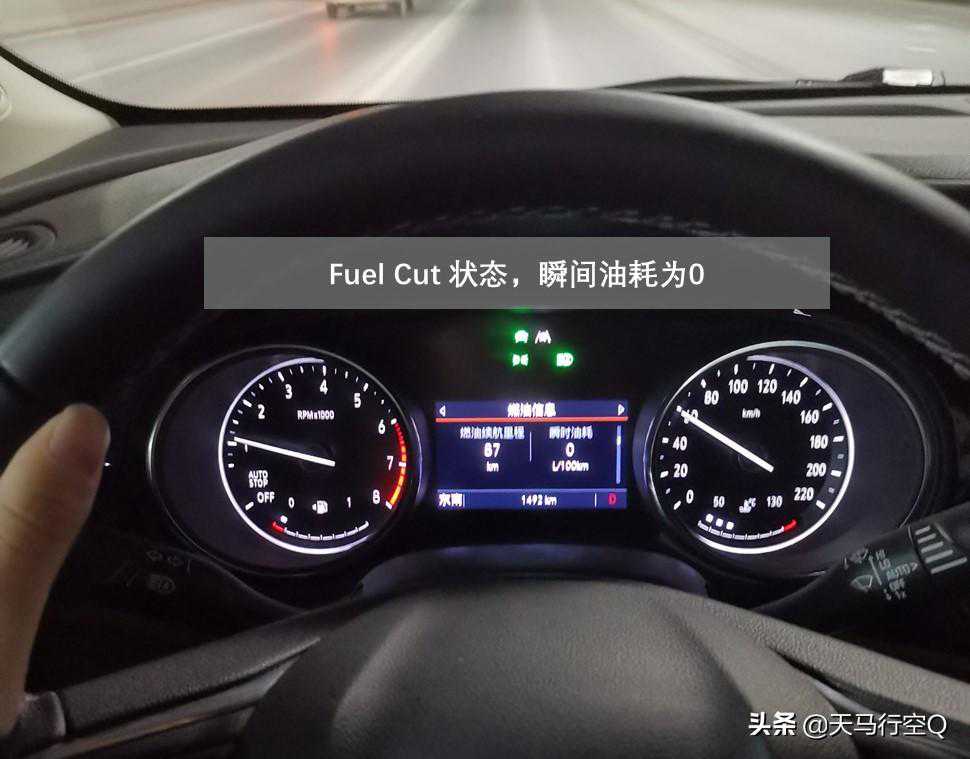 通用这套动力总成,FuelCut执行的非常彻底,达到要求水温后,只要油门松开必然进入FuelCut,经过实测,FuelCut可以持续2分钟以上。一般其他品牌车型中,打开运动模式会进入转速保持状态,FuelCut会关闭,而昂科拉GX即使运动模式,FuelCut也是时刻待命的,可见该车是家用属性。而且从控制角度来说,长时间FuelCut之后转速车速低到一定程度会在此喷油,转速会升上去,容易造成踩刹车还加速的违和感,通用这套发动机我也试了下,没有这个问题,说明这套动力总成完成度很高。
