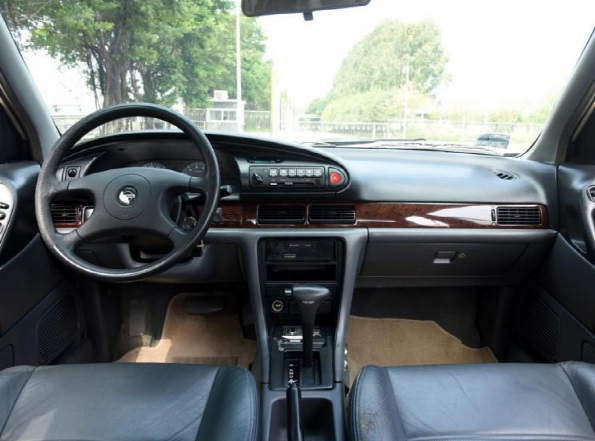 作为台湾省三义著名的汽车“装潢设计”公司,内饰是YATC的拿手绝活。为了提升质感,蓝鸟的内饰配色改为和裕隆版相同的浅灰+深灰two-tone双色设计,并在中控台上大量使用了核桃木纹饰板。方向盘也采用了和A33相同造型的核桃木+真皮方向盘,还增加了一颗安全气囊。真皮座椅也列为了标配,并且毫不吝啬地在门板上使用了大量皮革包裹。配置方面裕隆也做了很大的文章,将2DINCD音响、AUDIOPHONE车载移动免提电话、智慧情报后视镜、倒车雷达、HUD抬头显示器、行动秘书等e化配置都拿到了蓝鸟上面,安全配置则将四轮碟刹+ABS列为标配,这样的配置水平完全领先于同时期桑塔纳2000、广本雅阁甚至帕萨特B5。在一番改造之下,裕隆成功将运动化的SSS摇身一变成为极富豪华气息的中级轿车。