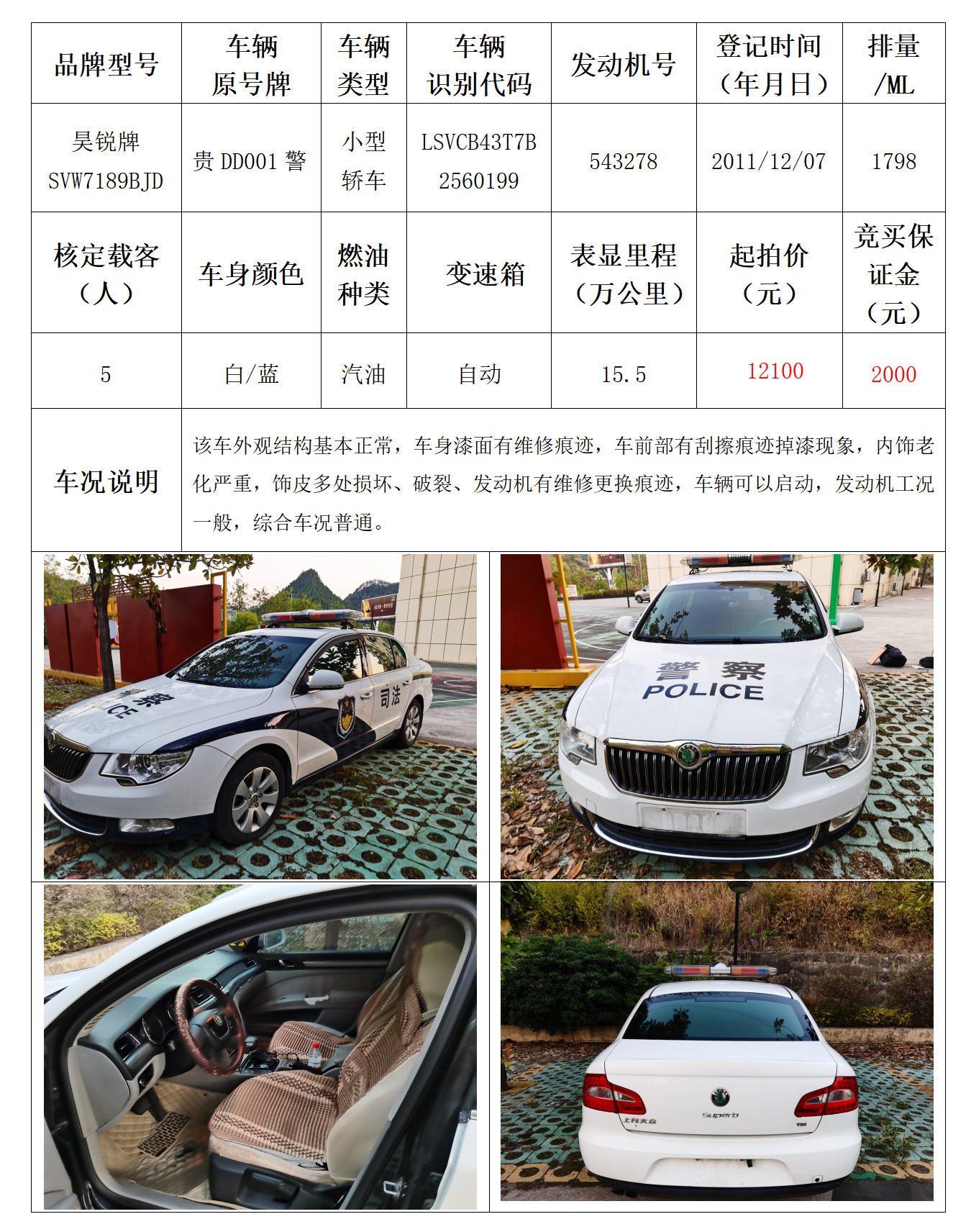 拍品编号6:昊锐牌SVW7189BJD小型轿车一辆