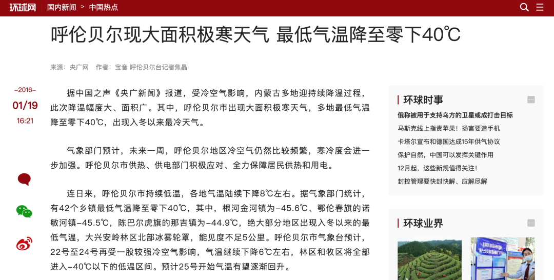 我自己的感觉也是这样,冬天真的越来越冷了。去年年初,北京有一天的最低气温居然到了零下19.6℃,创下了50年新低,讲真,我长这么大从来没觉得首都这么冷过,其他多地的最低气温也纷纷跌破历史极值。