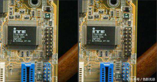 从“暴力”测试来看,+2过曝情况下,A7RM2、A7RM3能够拉出不少细节,但我们也可以看到白色部分细节已经难以拉回。而+1过曝情况下,两款相机可以比较轻松还原主板上的细节。