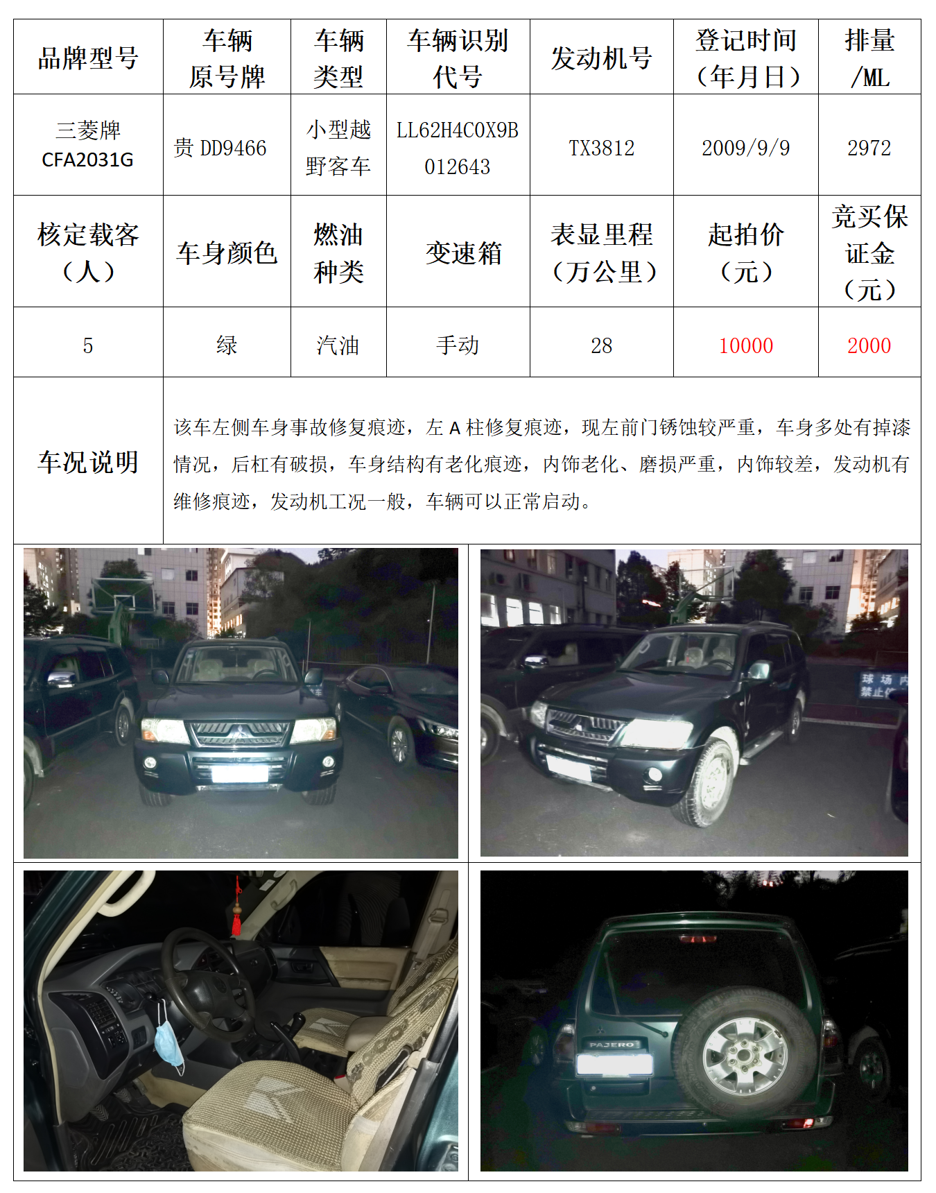 拍品编号1:三菱牌CFA2031G小型越野客车一辆