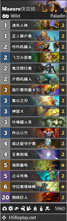 快攻骑也同样进入了T1,成为了骑士三驾马车中的最后一员。原版的快攻骑构筑已经十分强力,而这里我们也搬运了另一种不太一样的套路,那便是Corbett的登顶构筑。他的构筑基于一整套奥秘骑的体系,同时还加入了坎格尔的无尽大军。