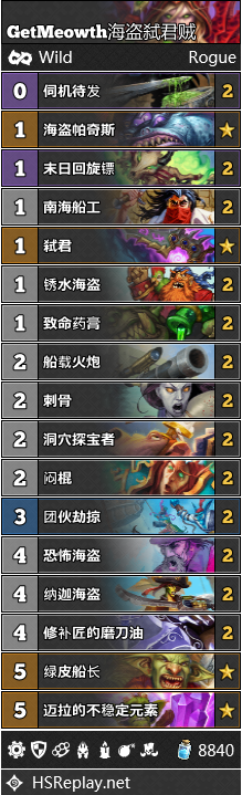 奇数贼还沉浸在失去冷血的悲痛之中,海君贼迅速取而代之,成为了高分段最热门的卡组形态。在4-传说分段,海君贼以超过10%的出场率,延续着盗贼工会的威名与荣光。