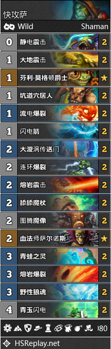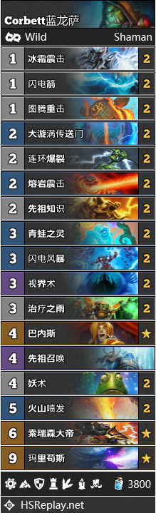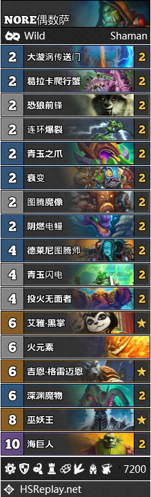 而战吼萨似乎就始终与成功无缘。很少有战吼萨能从低分段一路上爬,因为他的胜率实在是惨不忍睹。不管是组合技变种还是青玉变种都难堪大用,因为不论你玩的是何种套路,战吼萨既无力抵御对手的场面压力,也拼不过其他的慢速卡组。Player671使用下面搬运的构筑参加了狂野公开赛的决赛。