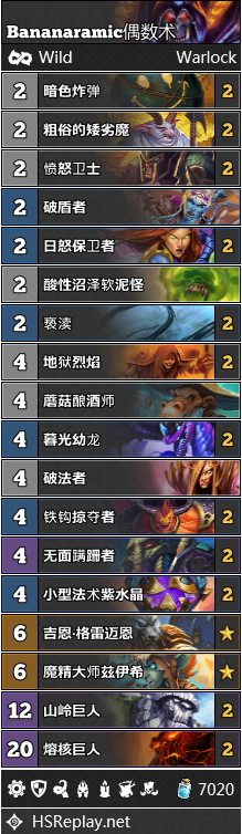 偶数术是一个十分强力的中速卡组,他在目前的环境之中有着上佳的发挥。而他的最大弱点也与魔块术如出一辙:十分畏惧那些拥有直伤能力的快攻卡组,典型案例便是盗贼和法师。不过即便如此,由于偶数术的卡位十分灵活,他还是可以携带一些针对卡牌来弥补颓势。Bananaramic的构筑不仅成功打到了传说高位,而且也被带去参加了狂野公开赛。这一构筑中包含了多种针对卡,以应对各种潜在的威胁。