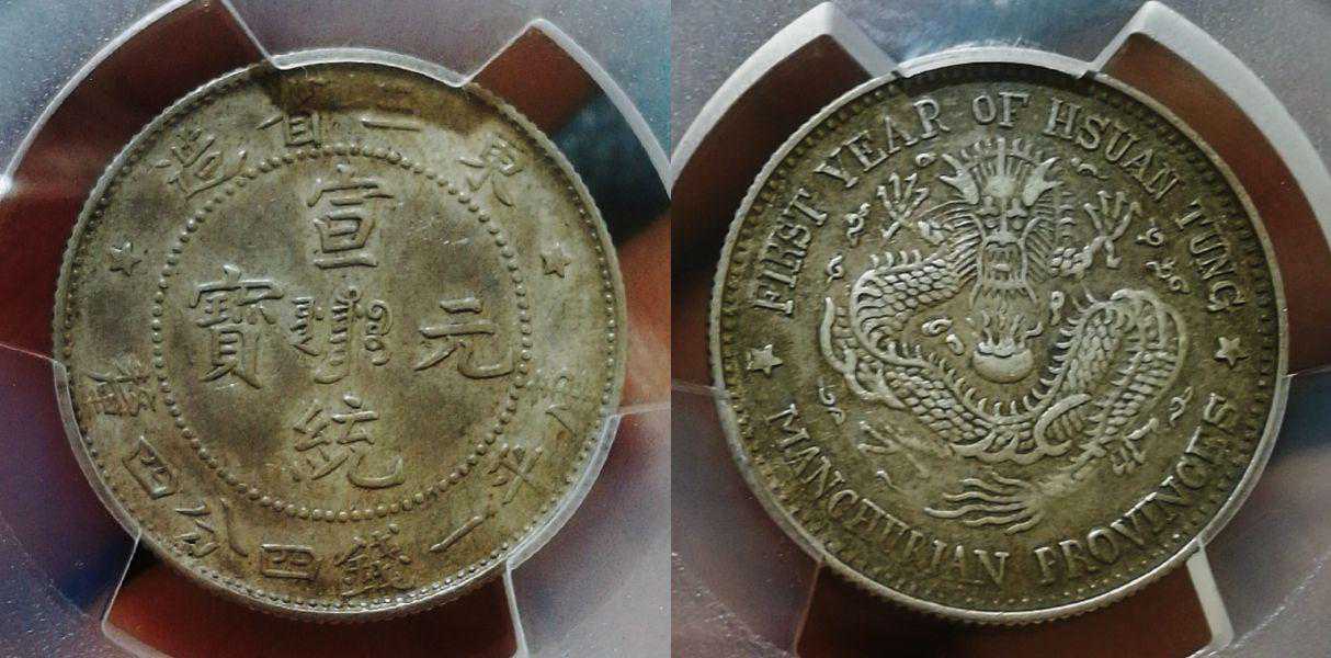 ①宣统满文缶宝,这个版别目前存世量百枚左右,品相都不好,龙鳞很差。有人考证这是一个宣统年造的关门币,其后都是民国后铸无满文,采用中梅花或者是中空的新龙币。目前pcgs35分左右的已经达到15,000元左右。