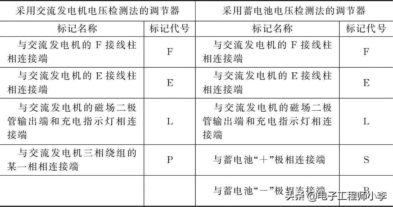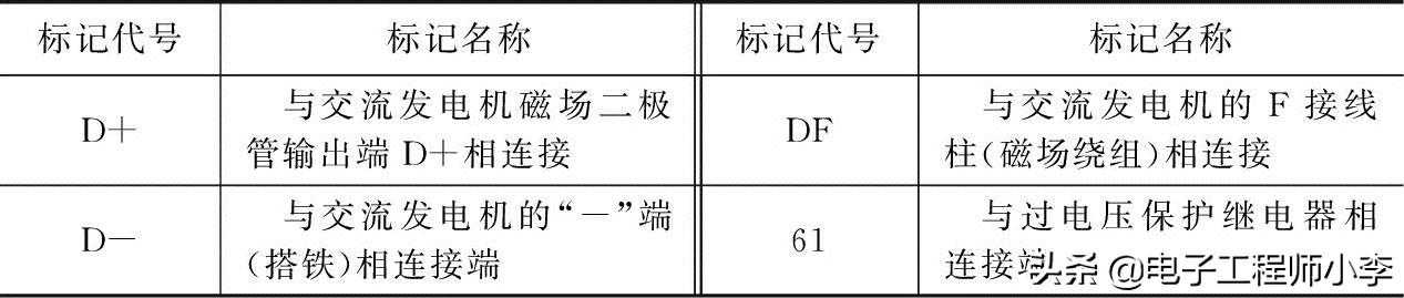 电子电压调节器的引脚不多,但如搞不清其接线柱上的标记功能,在识图时往往无法对其进行分析,也会影响故障检测、修理和代换。