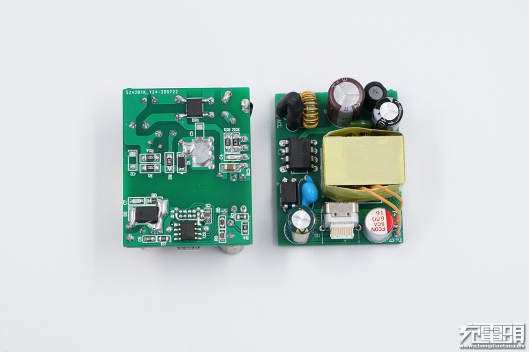 针对20W-27W市场,钰泰推出了ETA8056/8058两款,集成两款低阻抗的高压功率管IC。基于该芯片开发的0W方案PCB实测尺寸:25mm*23mm*22mm,仅硬币大小。