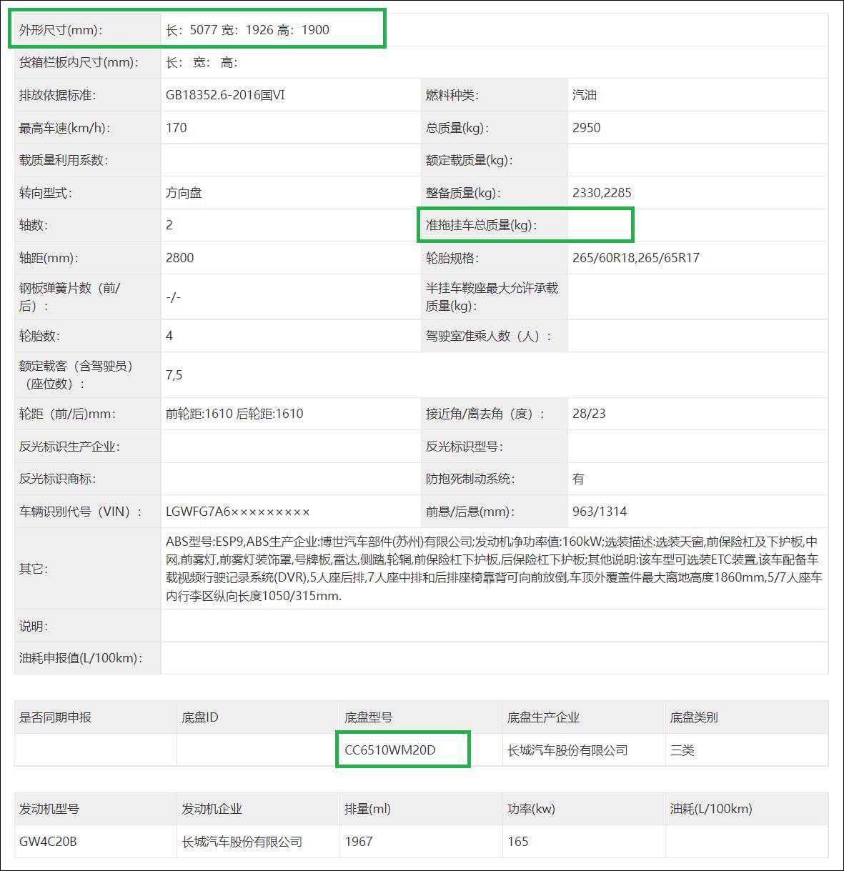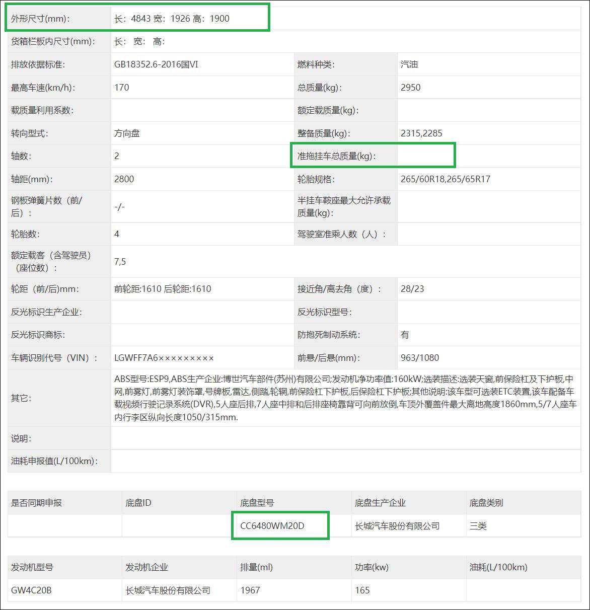 两款车型参数与现款比较,没有变化,一款为底挂备胎,型号CC6480WM20D,车长4843mm,另一款是后背备胎,型号CC6510WM20D,车长5077mm,两款均没有拖挂资质。两款发动机还是汽油机4C20B,众望的柴油机并没有出现。