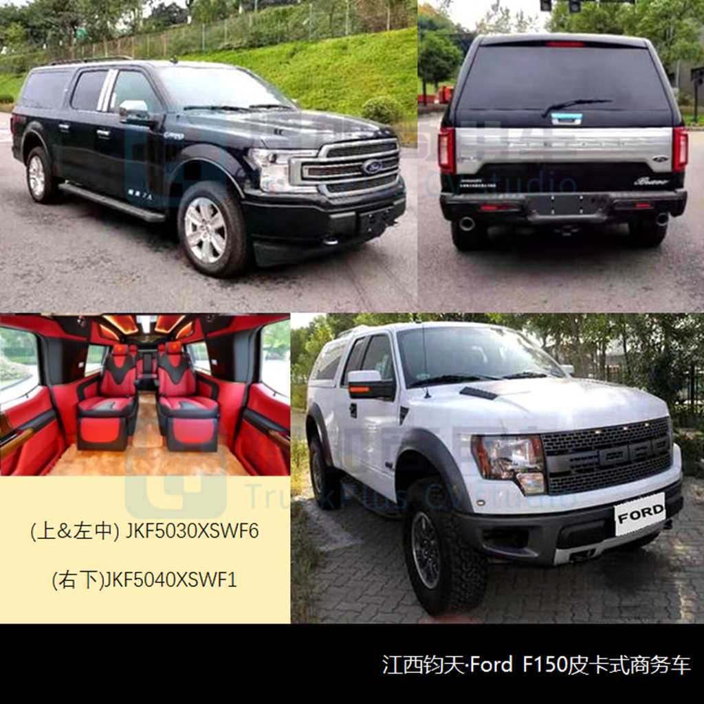 江西钧天本批申报了皮卡类商务车新品JKF5030XSWF6,利用福特汽车公司迪尔伯恩卡车工厂F150LTD整车进行改制,笔者在此前皮卡篇中也有提及。考虑到皮卡底盘车极少被商务车选用,因此这也是行业中非常罕见的一类产品。该车在美国有皮卡和SUV两种结构形态,而早年国内流行的、与皮卡共平台的6450型“硬顶吉普”,大抵也有相同的产品构思。