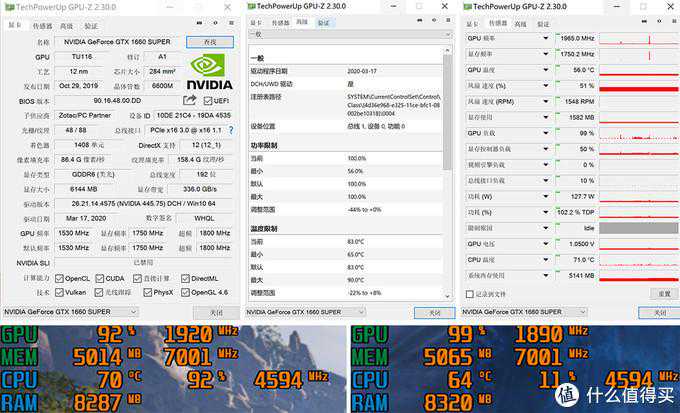 ▼GTX1660SuperX-GAMINGOCPRO频率为1530MHz,BOOST频率为1800MHz,比公版的1785MHz稍高一点,在3Dmark测试中最高达到了1965Mhz;游戏测试高频在1920MHz左右,低频在1890MHz左右。