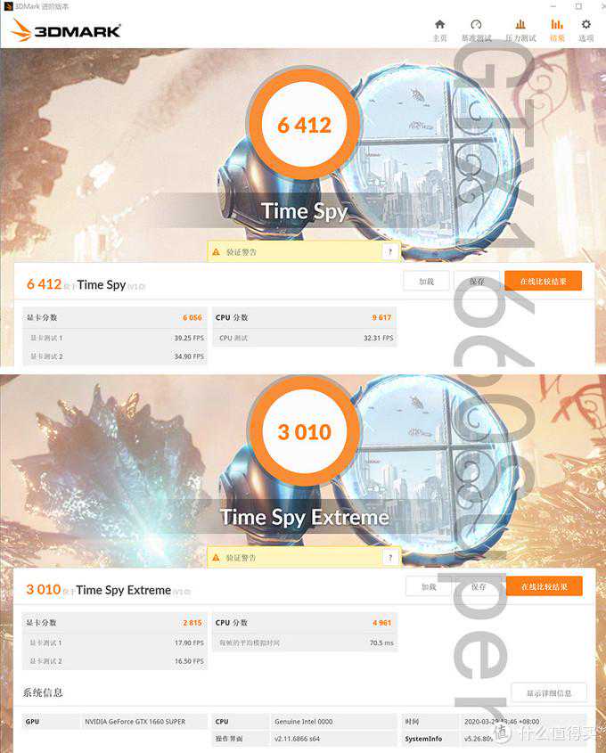 ▼3DMarkTimeSpy,截图为GTX1660Super数据。