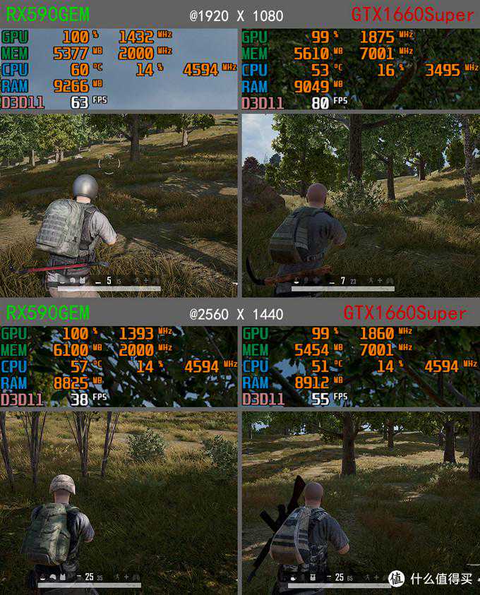 吃鸡也是N卡比较占优势,GTX1660Super大概领先RX590GME领先20fps左右,稍稍优化即可以在2k分辨率下流畅游戏了。