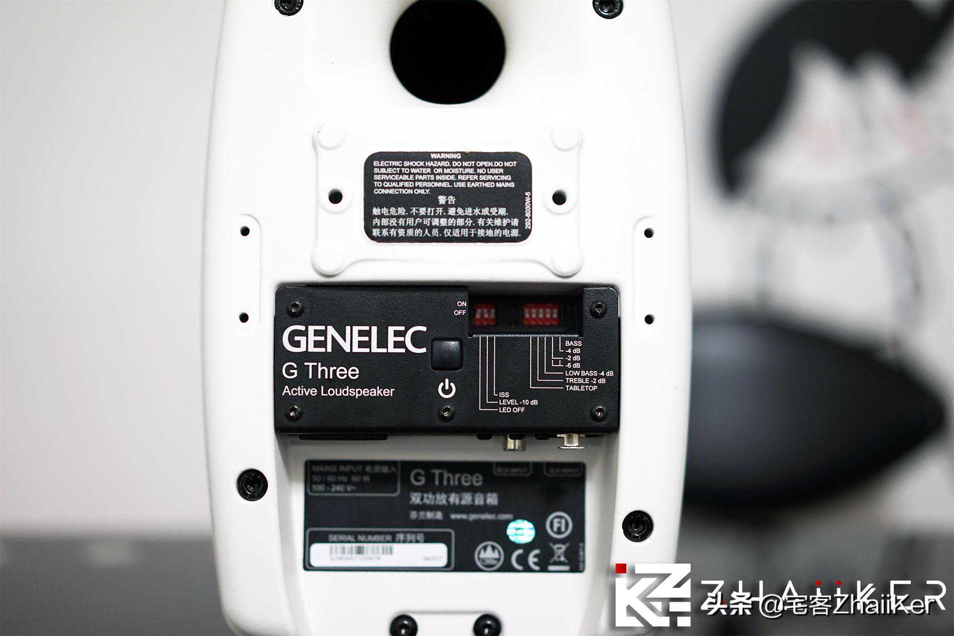 此前我们做过真力G1的评测时说过,G系列箱体的外观设计是基本一致的,三个型号放在一起,真的很可爱!材料方面,整体采用的是铝制外壳,正面两个单元,分别是高音以及中低音单元。因尺寸大小不同,重量上也会有所差异,G3的重量基本上一只手就别想拎得起来了。箱体的背部大致也一样,只不过接口以及电子分频控制的功能开关也略有不同。G1只有一个RCA莲花接口,5个功能开关,分别是ISS(自动休眠)、音量衰减-10dB、TABLETOP(桌面音色改善功能)、低音衰减2dB以及低音衰减4dB。而G2则比G1多了两个功能键,分别是LEDOFF以及LOWBASS衰减4dB功能,LEDOFF如字面所述,即前置显示灯关闭的意思,可以在暗室欣赏的时候不影响视觉效果,尤其是藏在投影幕布后面的情况下。而LOWBASS-4dB则是指重低音衰减4dB,可以得到更好的低音效果,而G3则在G2的基础上又增加了BASS-6dB(低音衰减-6dB)的开关选项,但同时除了有RCA莲花接口外增加了XLR平衡输入接口,进一步提高线材兼容性以及提升音质表现。