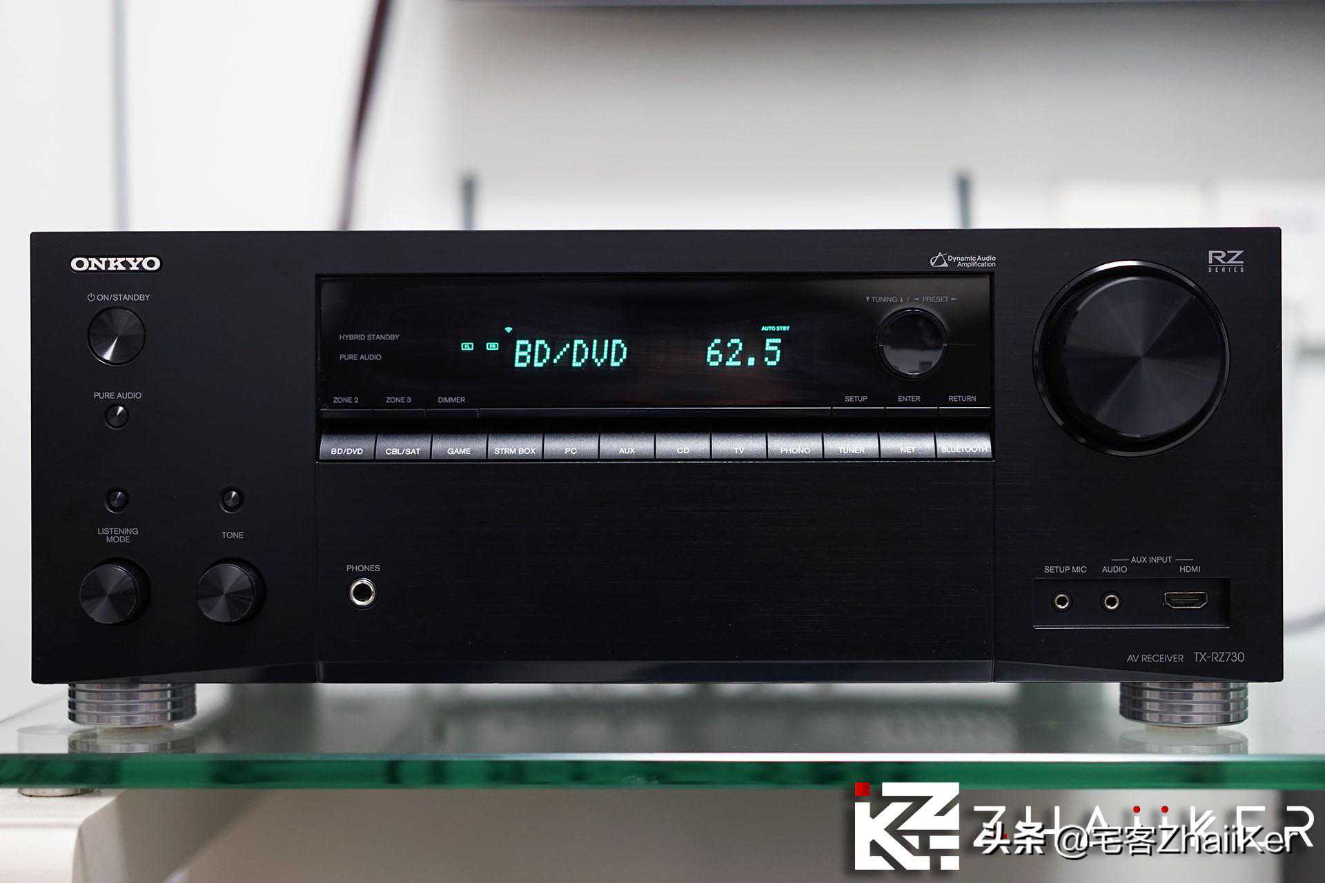 接下来我们看看安桥TX-RZ730,作为安桥新款中高端A/V接收机,这次我们只拿来做前级。此前我们宅客ZhaiiKer的网站也有相关评测,对其也给出了极高的评价,同时,它也是目前市面上性价比最高的11声道前级接收机。