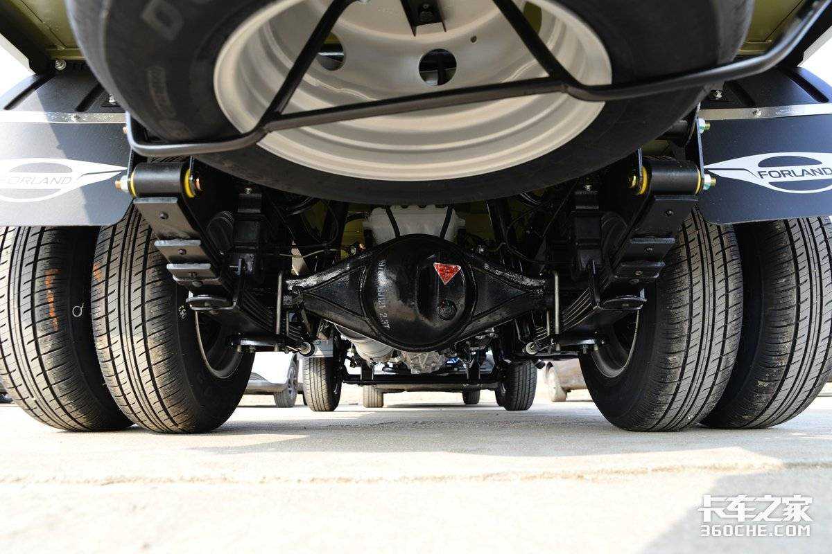 底盘配置方面,驭菱VQ1也使用了独立的车架大梁,前后均为钢板弹簧悬架,板簧片数为前3后5,后双胎的规格为175R14LT8PR,整体的底盘配置表现十分良好。