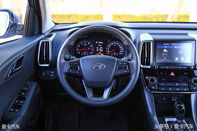 三辐式设计的方向盘采用了北京现代车型的经典造型,3/9点位置配备了布局合理的多功能按键。