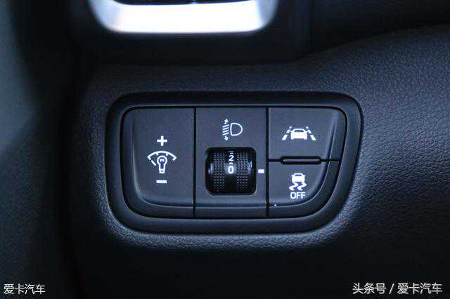 方向盘左下方,由左到右依次为仪表亮度调节、大灯高度调节、LDWS车道偏离警示系统和ESPOFF键。