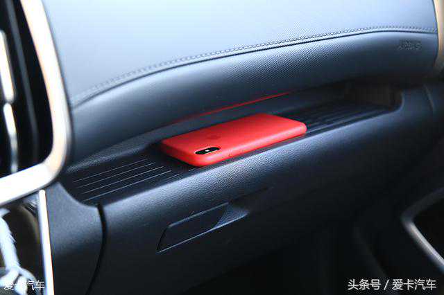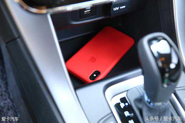 排挡杆前方的储物槽,放下一个iPhoneX大小的手机刚刚好。