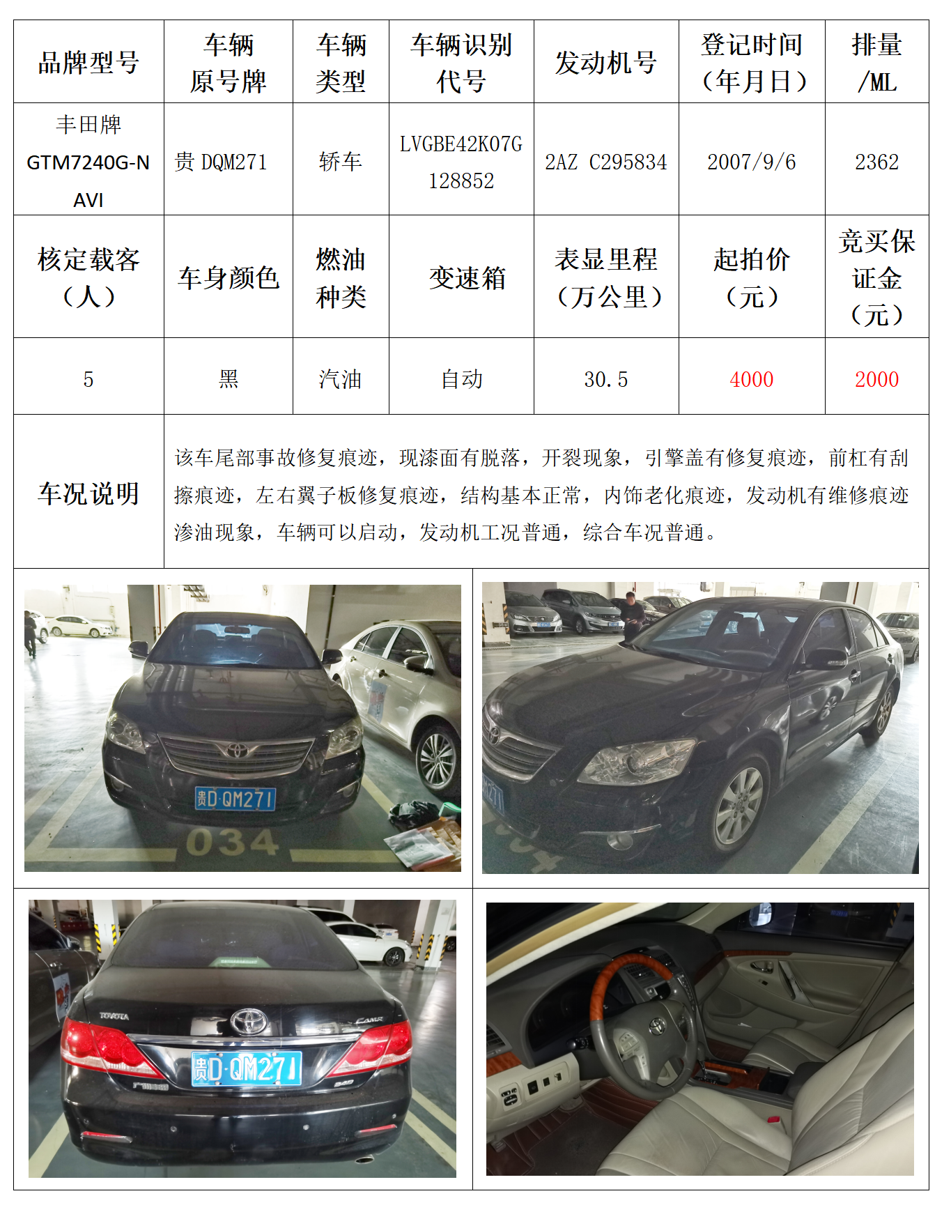 铜仁市机动车拍卖公告(丰田、大众、别克、帕萨特、现代等)