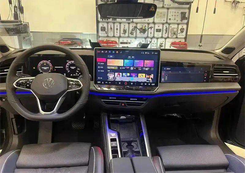 进入到车内,很难想象这是一台大众车型。现在它已经被那些新势力、新能源汽车逼迫得不得不也增加了屏幕的数量。车内的三块大尺寸液晶屏幕,为其带来了十足的科技感。另外,通过照片还能看出,车机的UI界面较为简洁,操作起来应该会比较便捷。