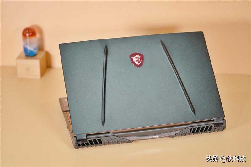 微星冲锋坦克2GL65的A面设计在游戏本中很常见,两道凸起外加中间的发光龙标,辨识度很高。