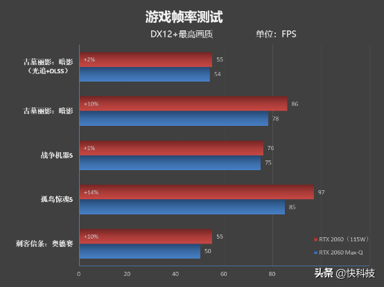 在2K下性能差距也是如此,满血RTX2060的性能领先在9%左右。
